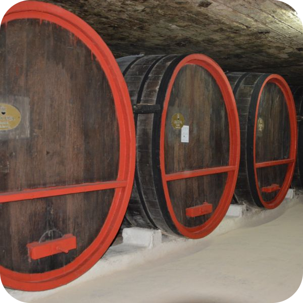 (Bild: Fässer im Weinkeller; Quelle: Bertram Wegemer)