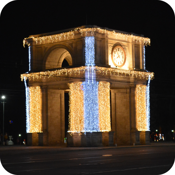 Der Triumphbogen Kischinau (Chișinău) wird auch heiliges Tor genannt, weil er auf einer Linie mit dem Glockenturm und dem Dom befindet. Der Bogen wurde gebaut um eine Glocke aufzunehmen die nichtmehr in den Turm der Kathedrale passte. Er wurde dem Sieg der russischen Truppen über die türkische Armee im Krieg von 1806-1812 gewidmet. Zusätzlich zu den großen Glocken im inneren des Bogens, befinden sich außen auch noch sehr schöne Uhren. Außerdem wurde der Triumphbogen zum fünft schönsten seiner Art gewählt und ist definitiv einen Besuch wert.